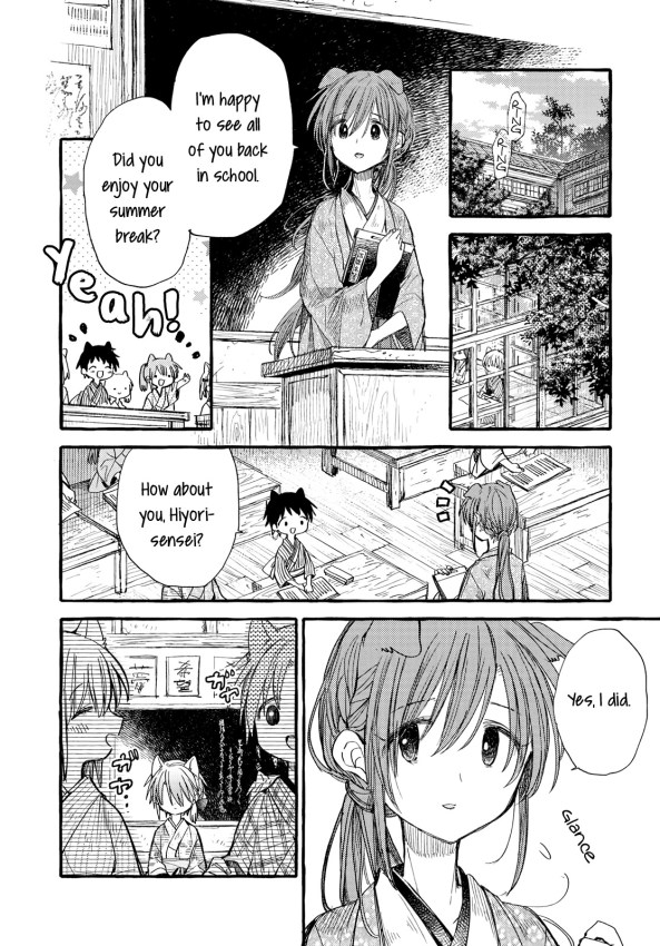 The mother of the mansion brings some maple leaves back for the girls to appreciate. Momohana changes her hair style. Kiyo chances on some peeled chestnuts sent by her grandmother. One of the older girls decides to move out of the mansion.